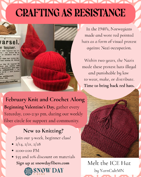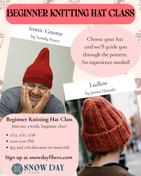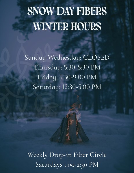 Snow Day Fibers is a cozy nook inside The Burrow, filled with new and gently loved yarn, curated notions, and handy fiber tools. We gather weekly for classes and a fiber circle.